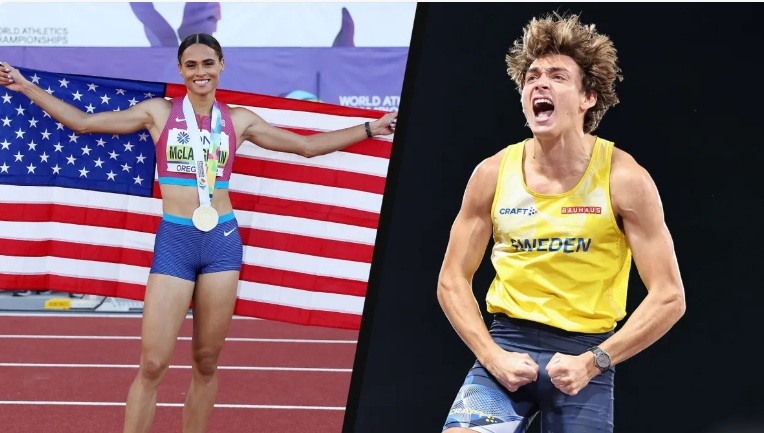 VĐV nhảy sào người Thụy Điển Armand Duplantis (phải) và VĐV chạy vượt rào và chạy nước rút người Mỹ Sydney McLaughlin-Levrone (trái). Ảnh: eurosport