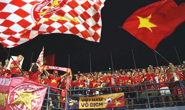 Sắc đỏ phủ kín một góc khán đài. Ảnh: VnExpress