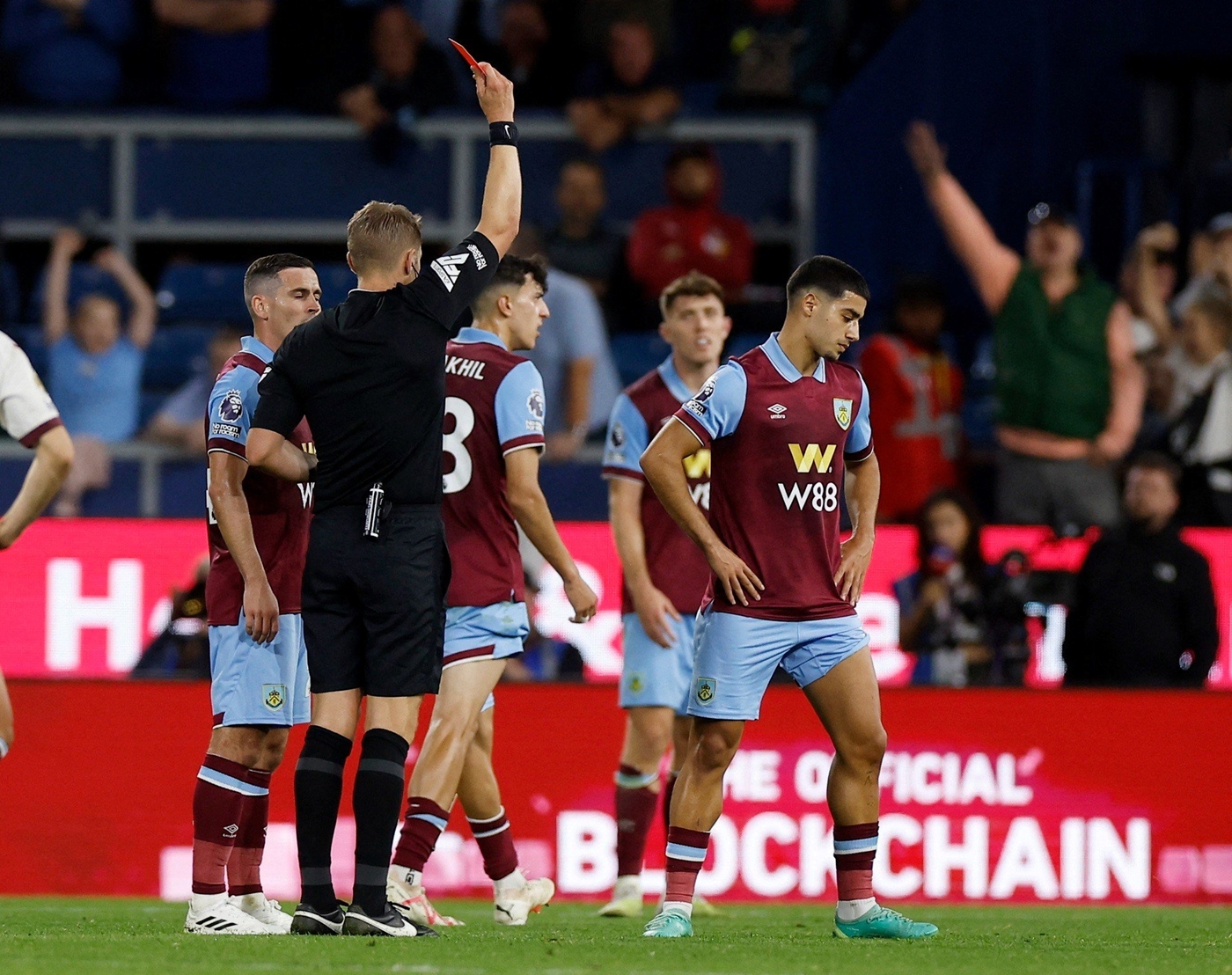 | Ngày thi đấu tồi tệ của Burnley khép lại với thẻ đỏ của Zaroury. Ảnh: Internet |