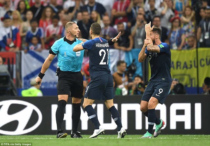 Các cầu thủ Pháp khiếu nại, yêu cầu trọng tài sử dụng công nghệ VAR. Ảnh: FIFA