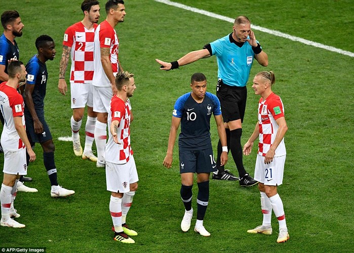 Phút 38, Perisic để bóng chạm tay trong vòng cấm từ pha đá phạt của Pháp. Ảnh: Reuters