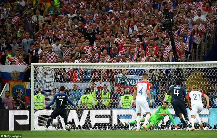 Trên chấm phạt đền, Antoine Griezmann ghi bàn nâng tỉ số lên 2-1 cho Pháp. Ảnh: Getty