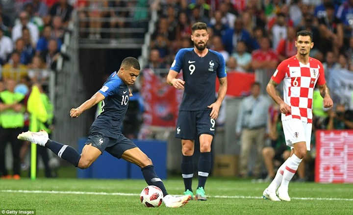 Chưa dừng lại ở đó, đến phút 65, Kylian Mbappé nâng tỉ số lên 4-1 cho Pháp sau cú dứt điểm rất căng từ ngoài vòng cấm. Ảnh: FIFA