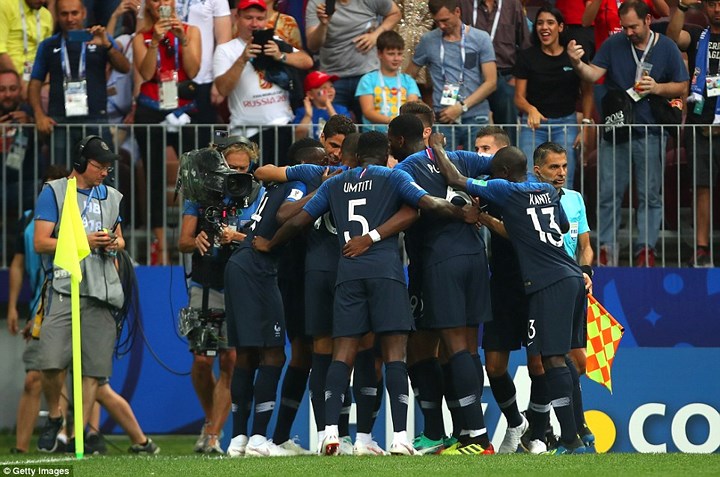 Tuy nhiên, Pháp mới là đội có bàn mở tỉ số trước ở phút 18. Ảnh: AP