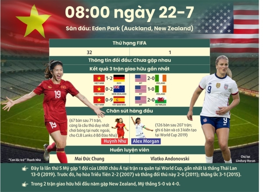 | Hấp dẫn trận Việt Nam chạm trán Mỹ. (Nguồn: FIFA, Ảnh: REUTERS, QUANG LIÊM, Đồ họa: CHI PHAN) |