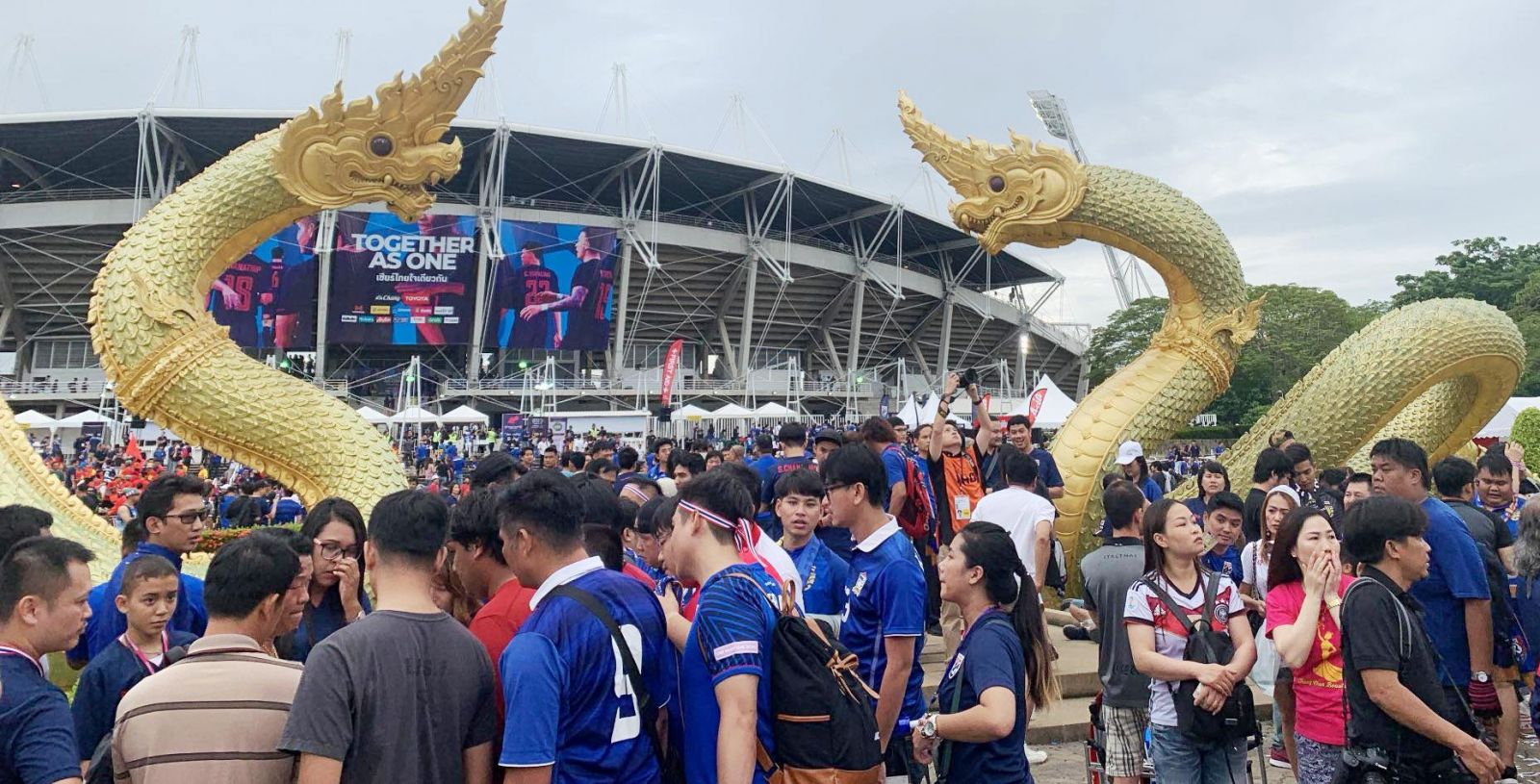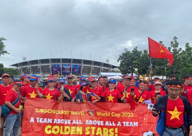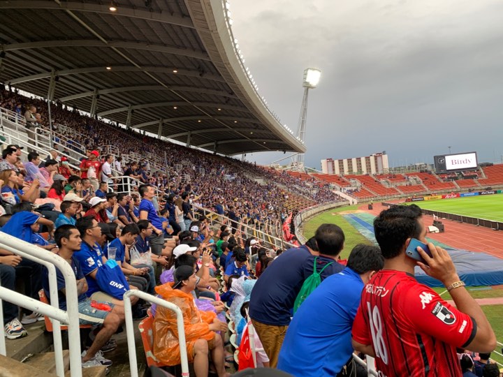Theo CTV Lâm Trần, đã có khoảng 3.000 CĐV Việt Nam sắc áo đỏ đã phủ kín khán đài sân Thammasat. “Nhưng vẫn còn một lượng lớn CĐV Việt Nam đứng bên ngoài. Có thể họ đợi bạn bè vào cùng. Cũng có thể do giá vé chợ đen quá cao, lại sợ mua nhầm vé giả nên còn chần chừ”.
