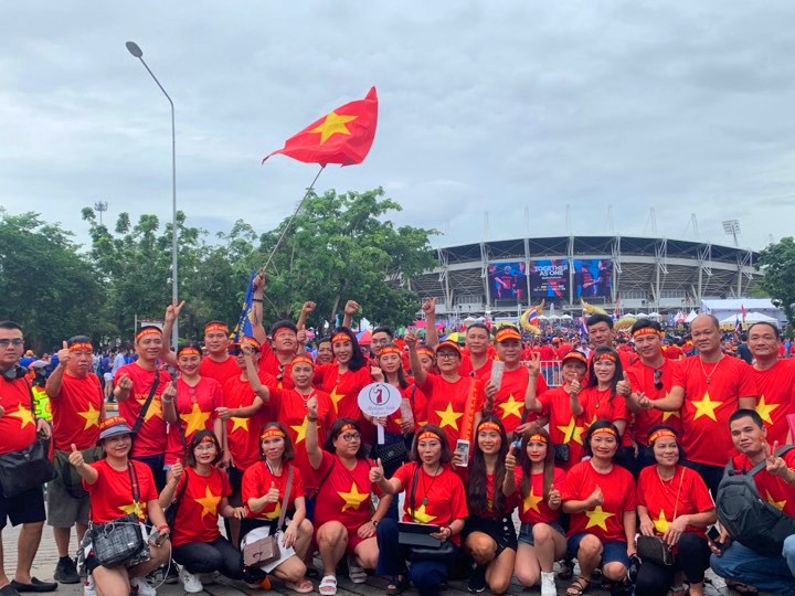 “Không khí bên ngoài sân Thammasat đang rất sôi động với sự cổ vũ của cả CĐV Việt Nam lẫn Thái Lan và không thấy xô xát nào xảy ra. Về phía CĐV Việt Nam, phần lớn là sinh viên, người lao động Việt Nam đang sinh sống, học tập và làm việc tại Thái Lan. Ngoài ra, còn có cả những người từ Việt Nam sang kết hợp công việc, du lịch. Qua đất bạn mới thấy tình đoàn kết của người Việt Nam”, anh Lâm Trần cho biết.