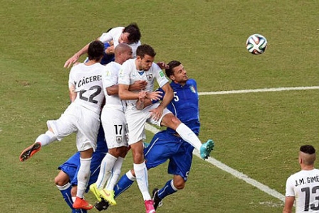 Diego Godin đánh đầu ghi bàn vào lưới Italia