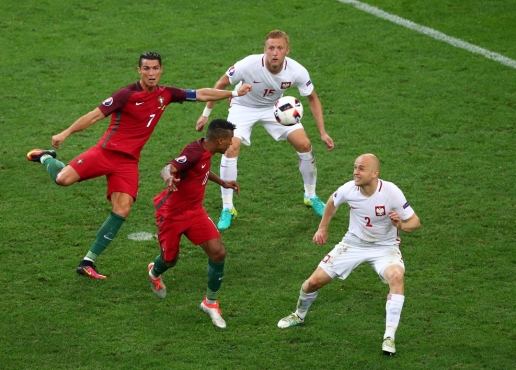 Sau cú giật gót tinh tế của Nani bên cánh phải, Sanches tung cú sút uy lực ở sát rìa vòng cấm đưa bóng chạm nhẹ vào chân một cầu thủ Ba Lan khiến Fabianski hoàn toàn bó tay. Tỷ số trận đấu được cân bằng ở phút 33.