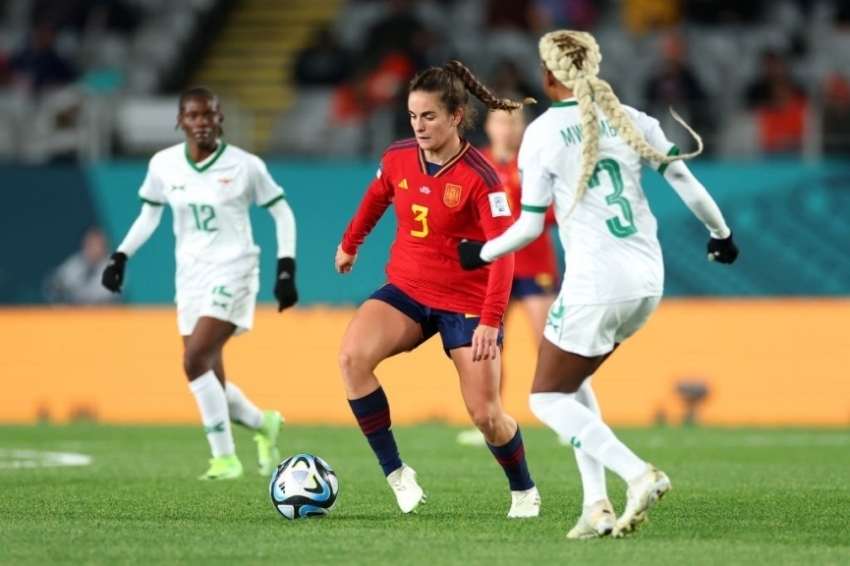 Đại diện của châu Âu tung vào sân đội hình mạnh nhất, đáng chú ý nhất là sự trở lại của QBV thế giới Alexia Putellas. Dù Alexia Putellas chưa tạo được nhiều ảnh hưởng, Tây Ban Nha vẫn dễ dàng áp đảo trước Zambia. Liên tục là các tình huống bắn phá ngay từ khi trọng tài mới thổi còi bắt đầu trận đấu. Phút thứ 9, tỷ số đã được mở cho Tây Ban Nha. Người ghi bàn là Teresa Abelleira Duenas với tình huống đệm bóng đơn giản sau đường chuyền của Jenifer Hermoso. Chỉ 4 phút sau, tỷ số đã được nâng lên 2-0 khi lần này chính Jenifer Hermoso ghi bàn từ đường kiến tạo của Putellas. Những nỗ lực phòng ngự của Zambia giúp họ không nhận thêm bàn thua nào nữa trong hiệp 1.