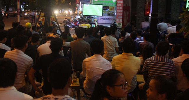 Ở các quán cà phê trên địa bàn TP. Huế, mỗi khi đội tuyển Việt Nam ra sân, cảm xúc ai ai cũng như vỡ òa, vui buồn hét hò theo từng đường lăn trái bóng.