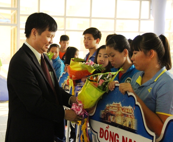 | Ông Nguyễn Dung tặng hoa cho các đoàn tham dự |