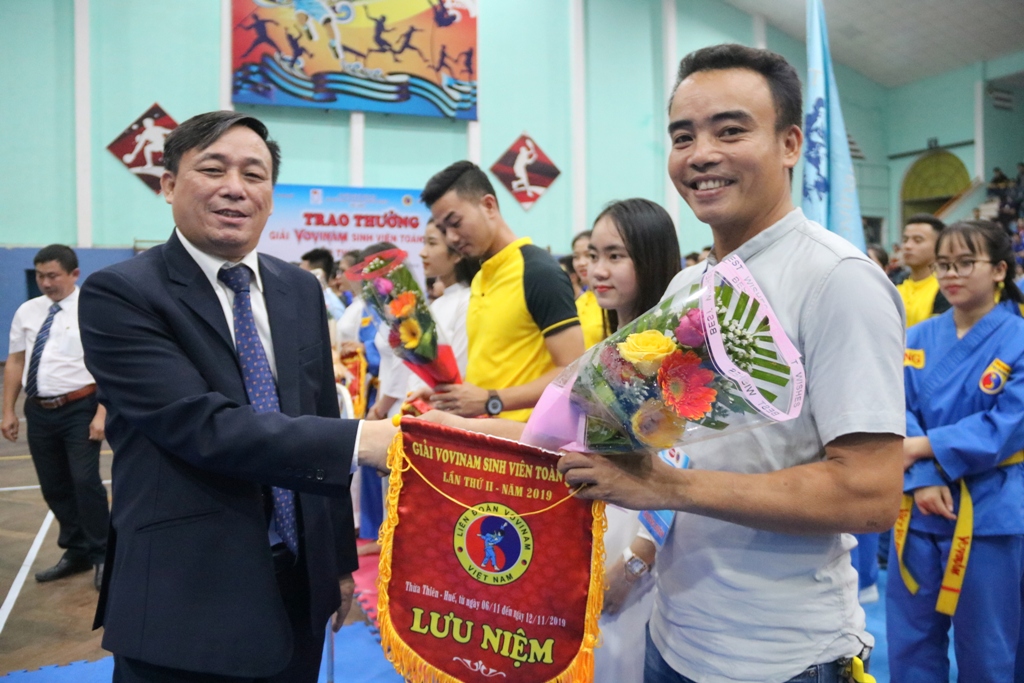 Đại diện Bộ GD&ĐT tặng cờ lưu niệm cho đoàn VĐV ĐH Huế