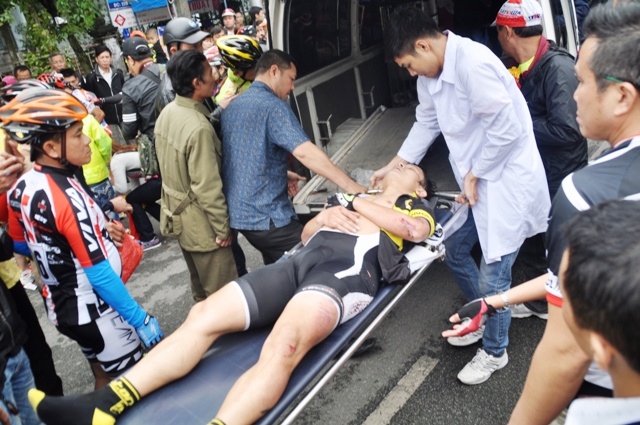 | Xe cứu thương lập tức xuất hiện để cứu chữa VĐV |