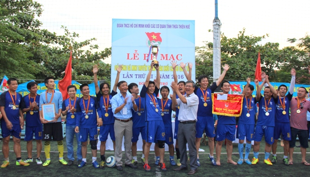 Chiều 21/8, giải bóng đá Mini truyền thống Đoàn khối các cơ quan tỉnh lần thứ XI – năm 2016 khép lại tại sân cỏ nhân tạo Uyên Phương (150 Nguyễn Trãi, TP. Huế).