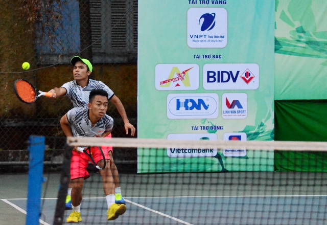 Tranh tài ở trận chung kết đôi nam dưới 40 tuổi