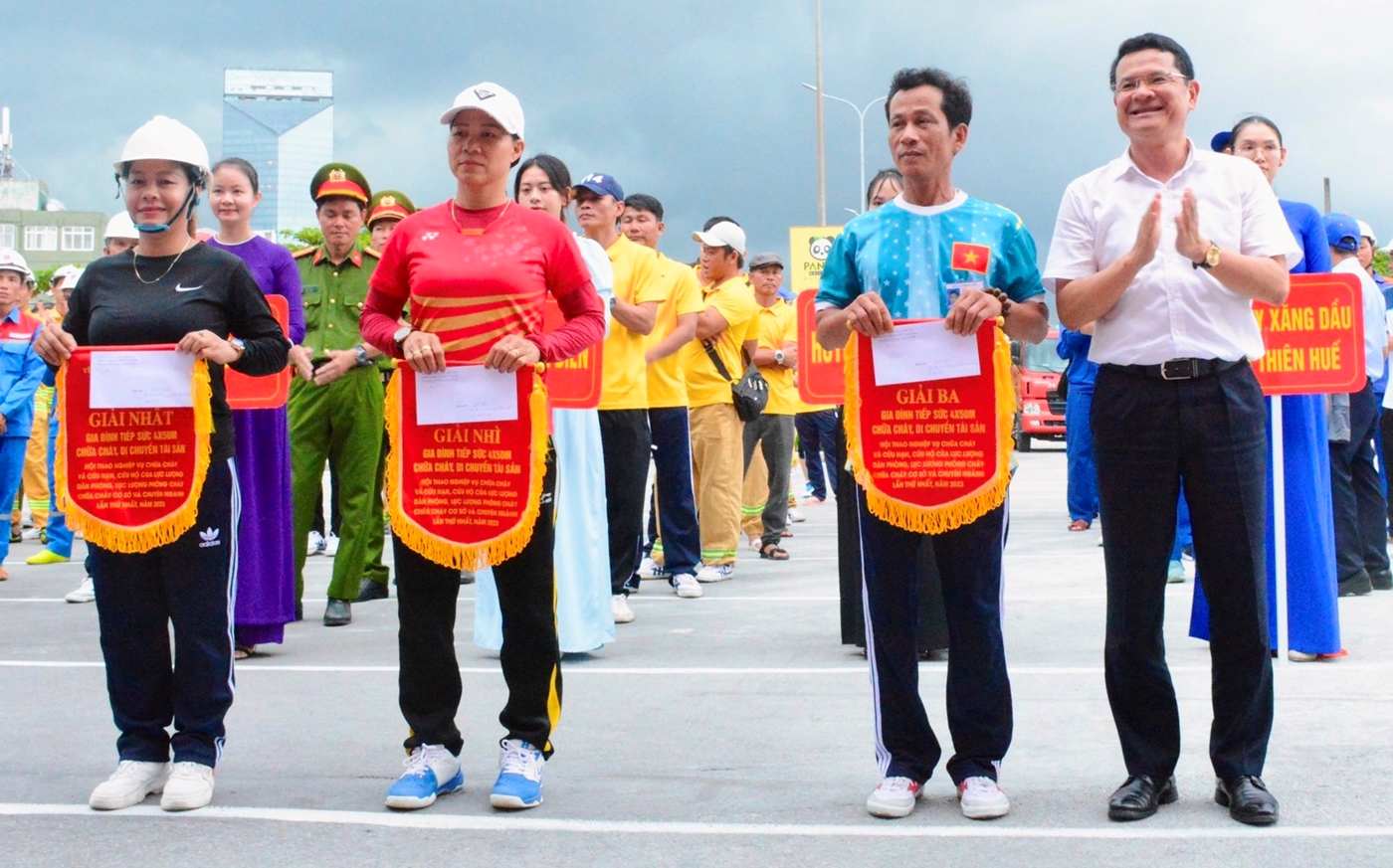 Ở nội dung thi đội hình tiếp sức 200m vượt chướng ngại vật dập lửa khay xăng, Công ty Xăng dầu Thừa Thiên Huế đạt giải Nhất; giải Nhì thuộc về huyện Phong Điền; TX. Hương Thủy đạt giải Ba.