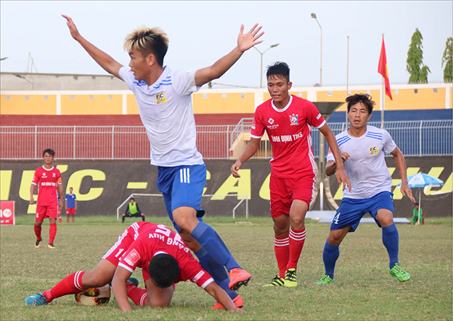 CLB Bóng đá Huế đã làm hàng thủ Bình Định TMS phải vất vả trong cuộc đối đầu ở lượt đi