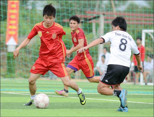 | Hiện một số cá nhân, tổ chức đã đầu tư xây dựng sân bóng đá cỏ nhân tạo tại các huyện, thị. Trong ảnh: Trận tranh tài giữa 2 đội bóng của xã Lộc Sơn (Phú Lộc) tại sân cỏ nhân tạo do xí nghiệp Long Phụng đầu tư. |