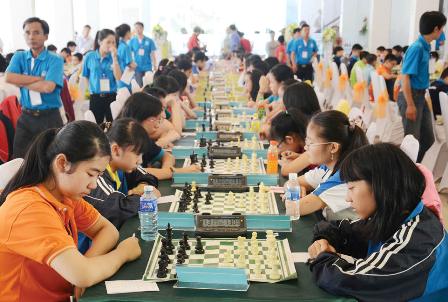 Hà Phương Hoàng Mai (phải), một trong những triển vọng của cờ vua Huế. Ảnh: Võ Nhân