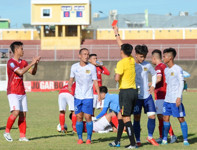 Chơi thiếu người sau chiếc thẻ đỏ gián tiếp của Phi Pha khiến CLB bóng đá Huế vỡ trận vào hiệp hai