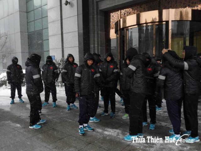 Tuyết rơi trên sân Thường Châu sáng nay, clip được nhóm LHS Việt Nam ở Trung Quốc truyền thông báo qua các nhóm