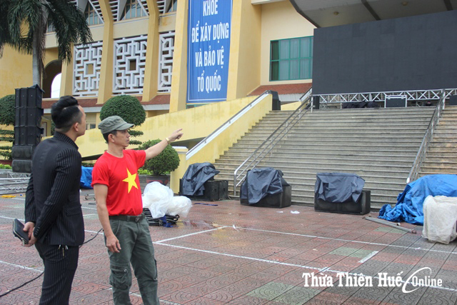 Tại Trung tâm Thể thao tỉnh, công ty TNHH MTV Vạn Phúc Media & Event và Hội nghệ sĩ Huế đang chuẩn bị cho buổi offline bóng đá trận chung kết