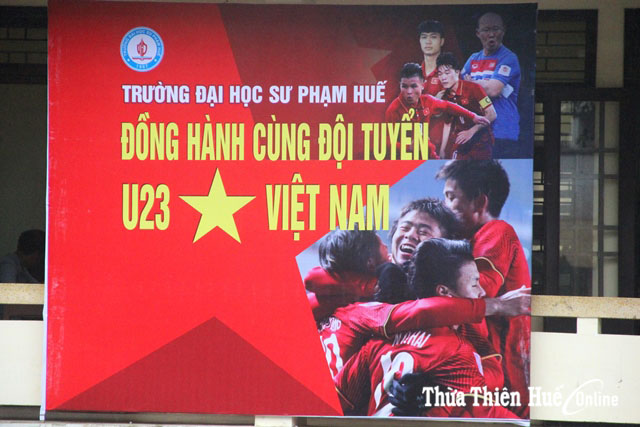 Sức nóng trước trận chung kết giữa U23 Việt Nam gặp U23 Uzbekistan đang lan tỏa đến các trường học. Trong sáng 27/1, một số trường ĐH ở Huế, như: Trường ĐH Sư phạm, ĐH Khoa học… cũng lắp ráp các màn hình lớn để tổ chức cho sinh viên cổ vũ bóng đá. Nhiều đơn vị còn tập luyện chương trình văn nghệ, nhảy dân vũ nhằm tăng thêm sự cuồng nhiệt trước giờ trái bóng lăn.