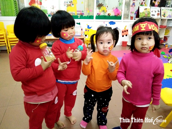 Các bé lớp mầm non cũng được ba mẹ và các cô lên sắc màu cờ