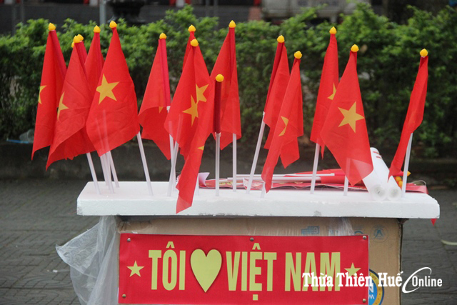 Những lá cờ được bày bán khắp TP. Huế