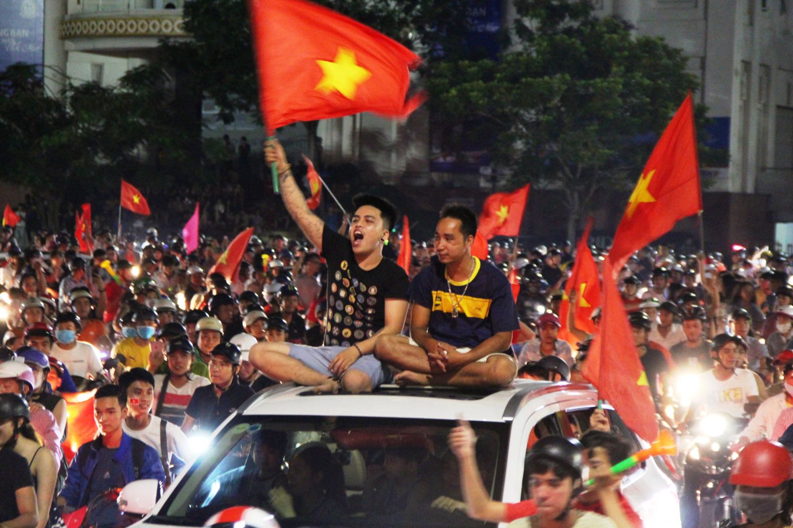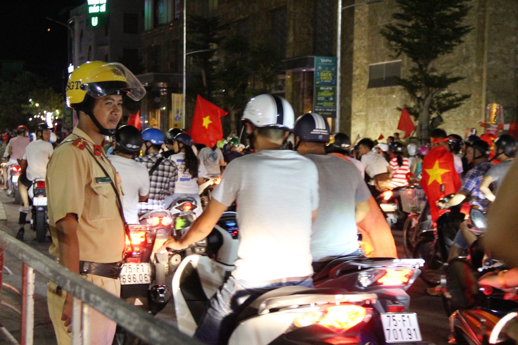 Ghi nhận của Thừa Thiên Huế Online cho thấy, nhiều tuyến đường như Hùng Vương, Hà Nội, Đống Đa, Nguyễn Huệ, Lê Quý Đôn... và khu vực bùng binh ngã sáu kín mít người cùng với cờ, kèn, băng rôn reo hò “Việt Nam chiến thắng”, “Việt Nam vô địch”...