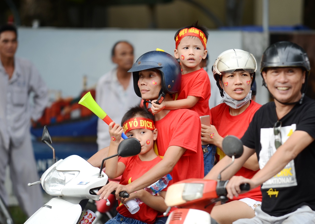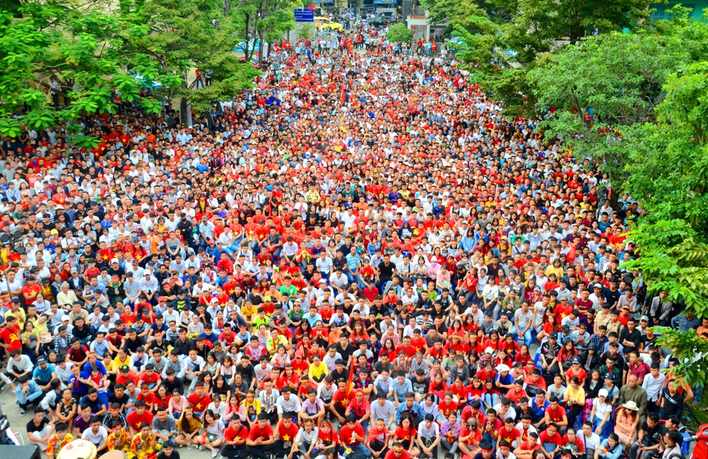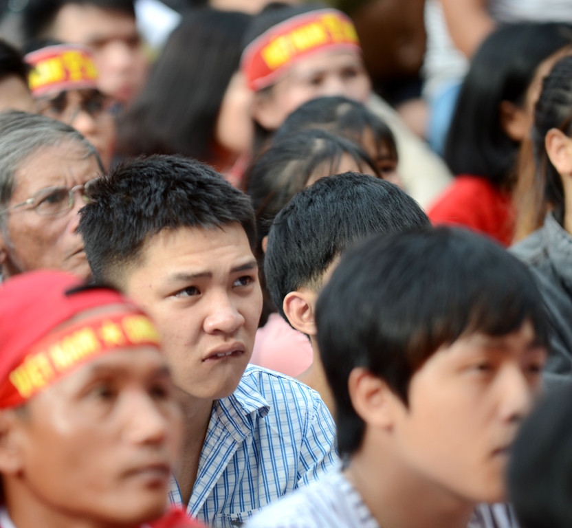 Đến 15h chiều, dù còn 1 tiếng mới đến giờ bóng lăn nhưng trong sân trường đã không còn chỗ ngồi, nhiều CĐV phải chen chúc dưới tiết trời oi bức. Dù vậy, không ai cảm thấy khó chịu khi mà tinh thần Việt Nam đang dâng cao trong mỗi người. Hoàng Thắng – một sinh viên của Trường ĐHKH Huế chia sẻ: “Sáng nay một số bạn rủ em về nhà xem cho thoải mái, nhưng em từ chối vì xem bóng đá ở đây có không khí và cảm xúc hơn”.