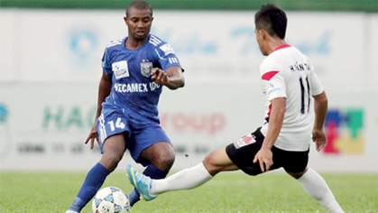 Đồng Tâm Long An (phải) tiếp tục thua trận trước Becamex Bình Dương