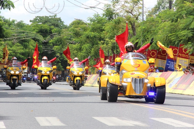 Đoàn xe mô tô mở đường trước khi đoàn đua về đích