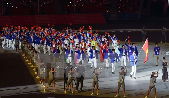 Đoàn Việt Nam trong lễ khai mạc. (Ảnh: Quốc Khánh/TTXVN)