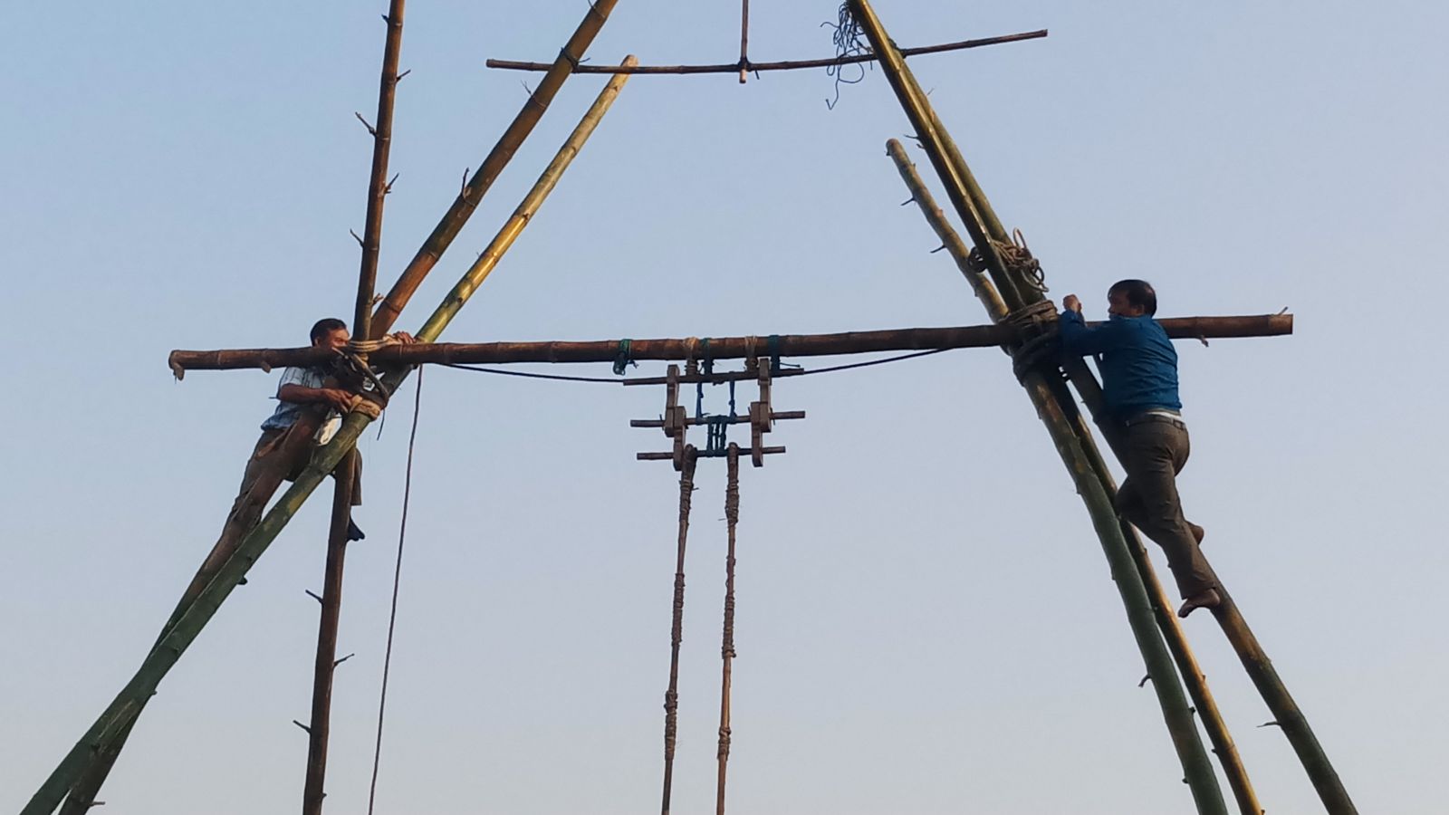 Để chuẩn bị cho lễ hội đu truyền thống, từ trước Tết, Ban tổ chức tìm những cây tre ngà lớn chắc chắn và có dáng cong, các giá đu, đòn đu và gióng đu được liên kết với nhau bằng các nuột thừng, tre, lạt mây... tạo độ nhún để người chơi đu có thể bay lên cao. Người chơi lên giá đu được trang bị dụng cụ bảo hộ để đảm bảo an toàn.