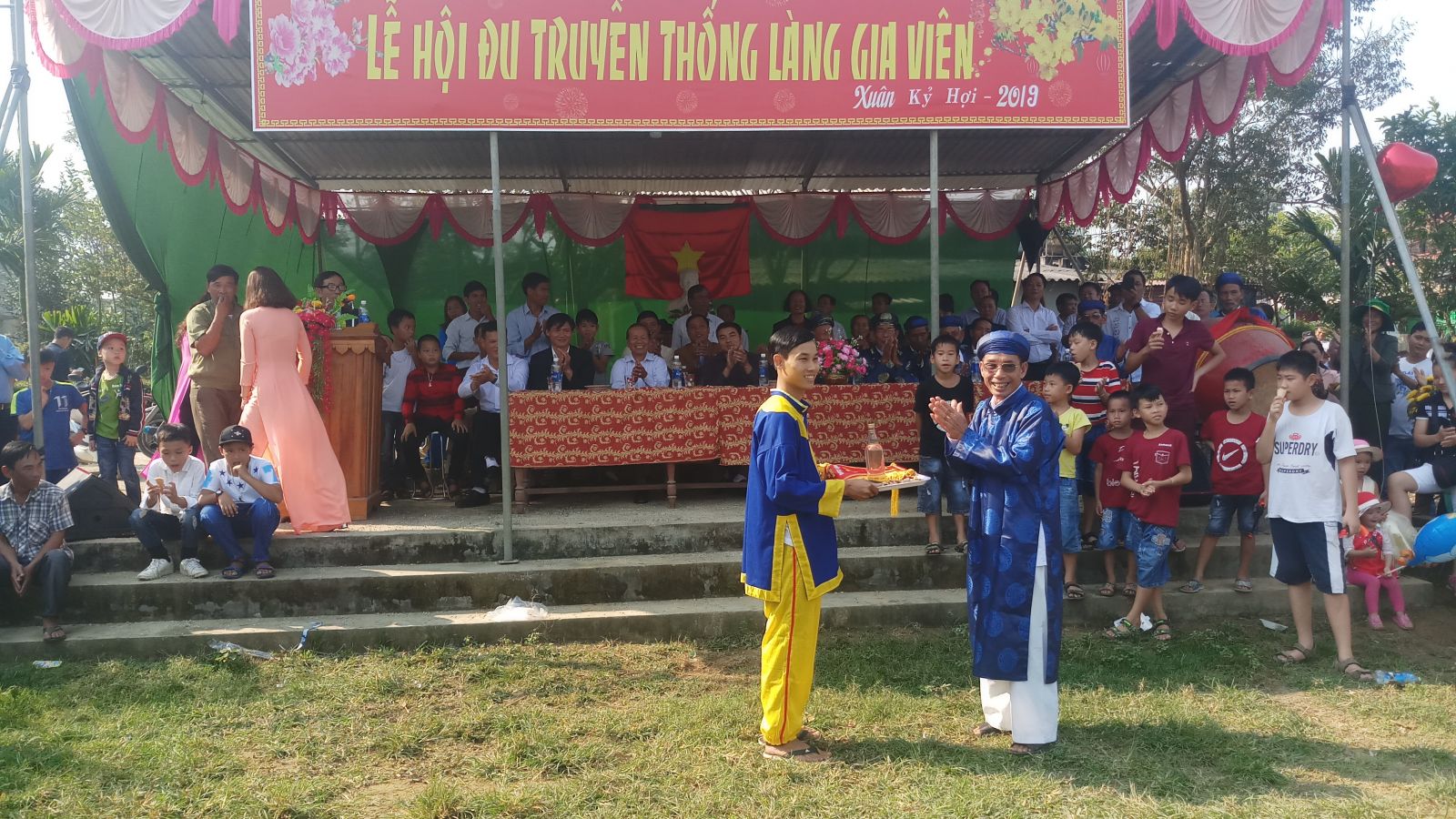 Em Bùi Mạnh Điền, người vừa giành được giải cúng lễ hội đu truyền thống thôn Gia Viên năm nay vui vẻ: “Đây là năm thứ 5 em tham gia giải đu truyền thống của thôn. Thật sự là em rất vui và rất tự hào vì đã nỗ lực hết mình để đạt được giải thưởng cao. Đây là món quà đầu năm mới hy vọng nó sẽ mang lại nhiều may mắn cho em trong năm Kỷ Hợi 2019”.