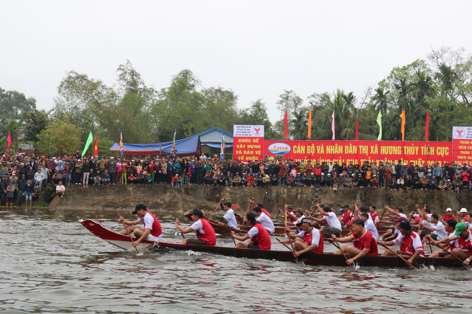 Ngày 24/2 (mùng 9 tháng Giêng), TX Hương Thủy tổ chức giải đua trải truyền thống đầu năm trên sông Vực. Giải đua quy tụ hơn 380 vận động viên đến từ 10 phường, xã trên địa bàn thị xã.