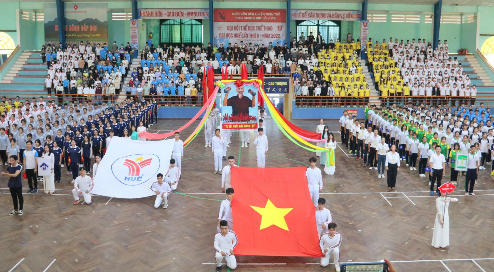 Lễ khai mạc Đại hội TDTT ĐH Huế thu hút gần 2.500 vận động viên, cán bộ, giảng viên, sinh viên đến từ các đơn vị thành viên, trực thuộc và thuộc ĐH Huế tham dự.