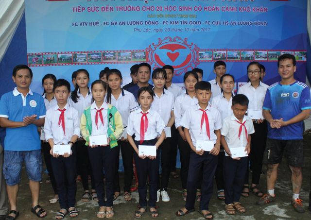 HNN.VN - Chiều tối ngày 29/10, tại SVĐ Trường THPT An Lương Đông (xã Lộc An, Phú Lộc), Giải bóng đá “Giao hữu-Nối nhịp nghĩa tình VTV - Kết nối yêu thương lần thứ XIV năm 2017” đã bế mạc trao cúp, giải và trao 25 suất học bổng, mỗi suất học bổng trị giá 1,35 triệu đồng, cho học sinh nghèo hiếu học của Trường THCS Lộc An và THPT An Lương Đông.