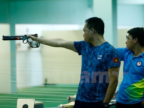 Xuân Vinh giành Huy chương Vàng thứ hai tại Cúp bắn súng quốc gia 2017. (Ảnh: Tá Hiển/Vietnam+)