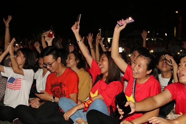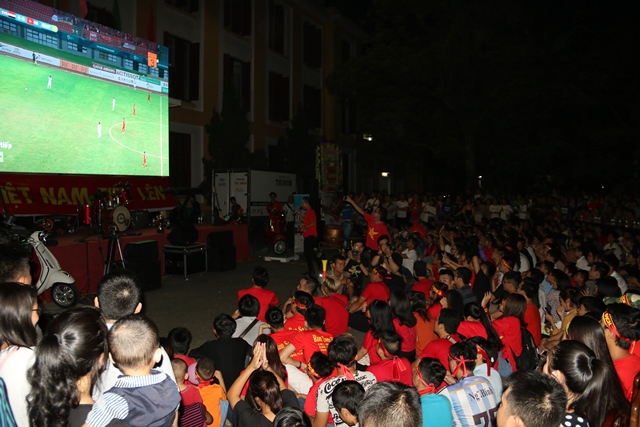 Các đơn vị đã bố trình màn hình Led 20m2 trước tiền sảnh Trường ĐH Khoa học để chiếu trận đấu của đội tuyển Olympic Việt Nam gặp Olympic Syria, thu hút khoảng hàng ngàn khán giả là sinh viên và người dân theo dõi, cổ vũ.