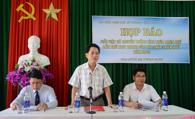 Sáng 18/3, tại trụ sở Báo Thừa Thiên Huế diễn ra buổi họp báo giải việt dã truyền thống toàn tỉnh tranh cúp Báo Thừa Thiên Huế lần thứ 24-2015. Bà Nguyễn Thị Hồng Hạnh – Phó Ban Tuyên giáo Tỉnh ủy; đại diện các sở, ngành hữu quan cùng đông đảo phóng viên Trung ương và địa phương đã đến dự.