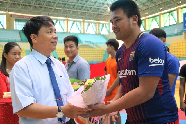 Ông Lê Xuân Bình, Phó Giám đốc Sở Văn hóa và Thể thao tặng hoa cho các đơn vị tham gia giải
