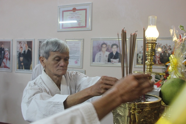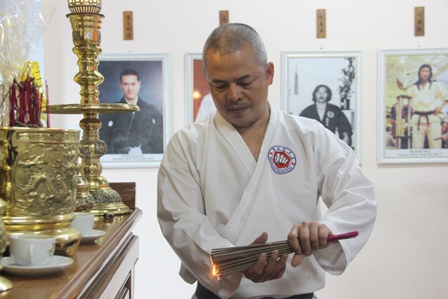 HLV Lê Văn Lộc, Phó trưởng tràng thường trực hệ phái Suzucho Karate-Do thắp nhang để các cao đồ, môn đồ tiến hành nghi lễ bái Tổ