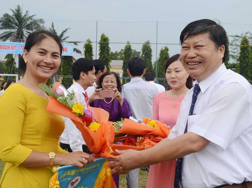 Trưởng Ban Tuyên giáo Tỉnh uỷ Nguyễn Thái Sơn tặng hoa cho các đoàn tham dự ĐH