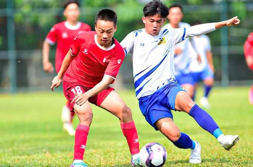 | Một pha tranh bóng trong trận U19 Huế gặp U19 PVF. Ảnh: CLB Bóng đá Huế |