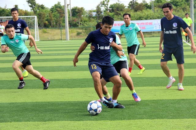 Trận đấu giữa đội bóng HueWaco FC và công ty Điện lực Thừa Thiên Huế