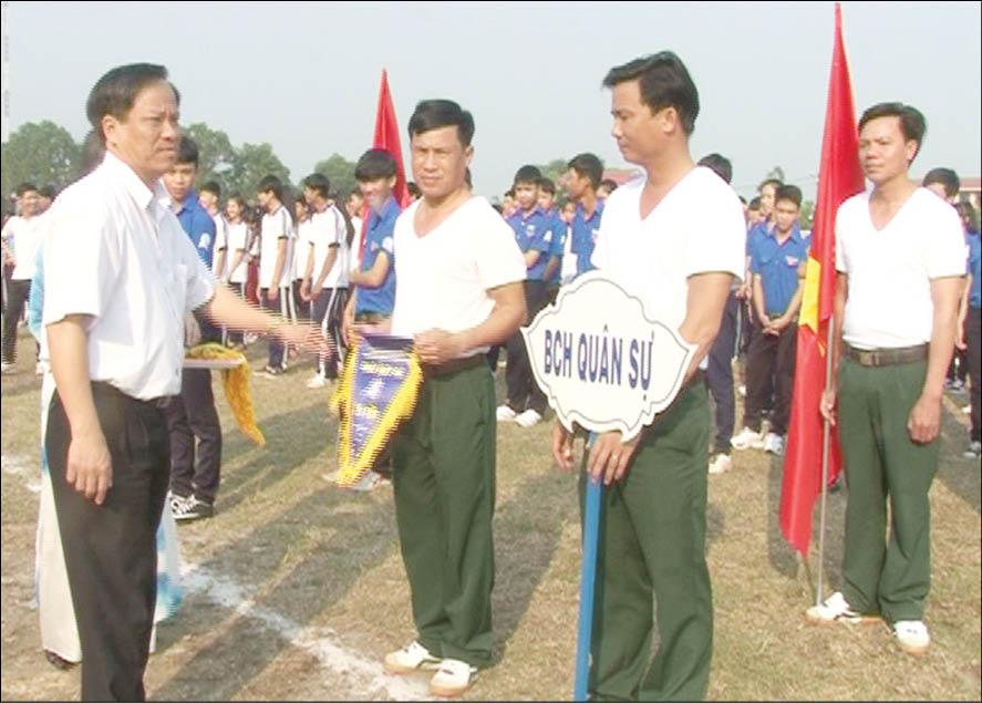 Phó Bí thư Huyện ủy, Chủ tịch UBND huyện Phú Vang La Phúc Thành tặng cờ lưu niệm cho các đơn vị tham gia giải