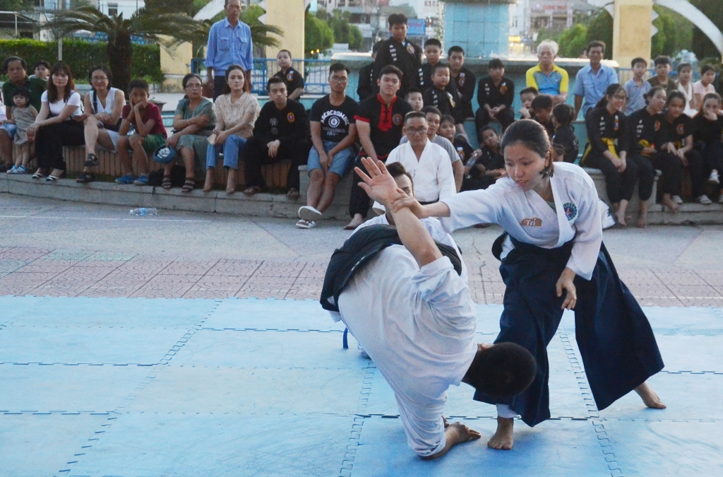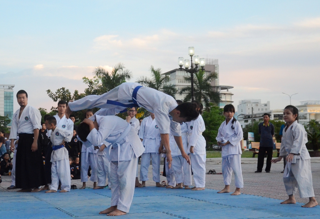 Tiếp đến, CLB Aikido (Hiệp khí đạo) cũng nhận được nhiều tán thưởng từ khán giả với những pha bay người vượt chướng ngại vật của các võ sinh nhí